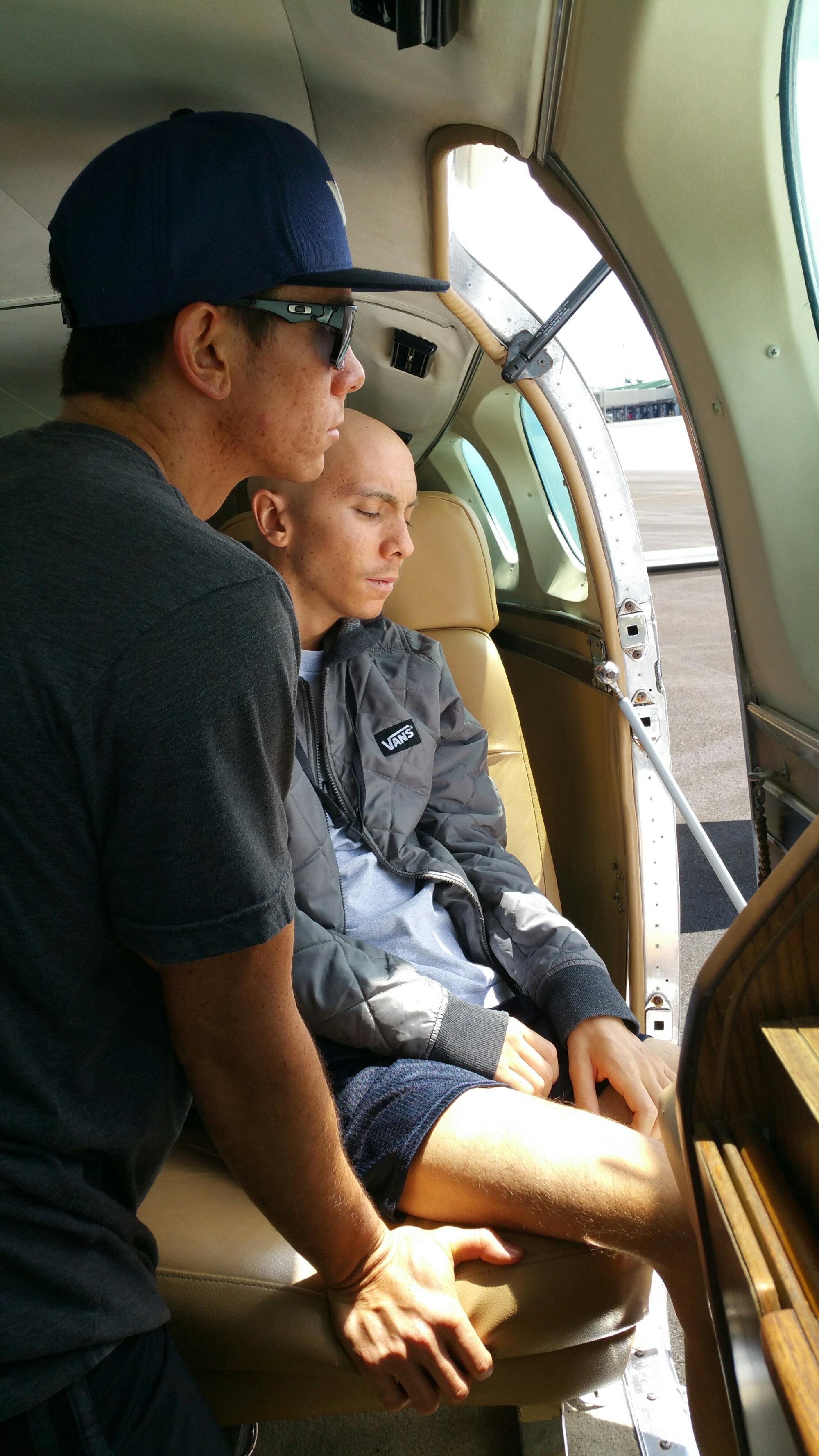 Despite all the stress of the trip and the dire situation we were in, I took a few photos on that day, including this photo of Zach and Ian preparing to deplane on the Big Island.