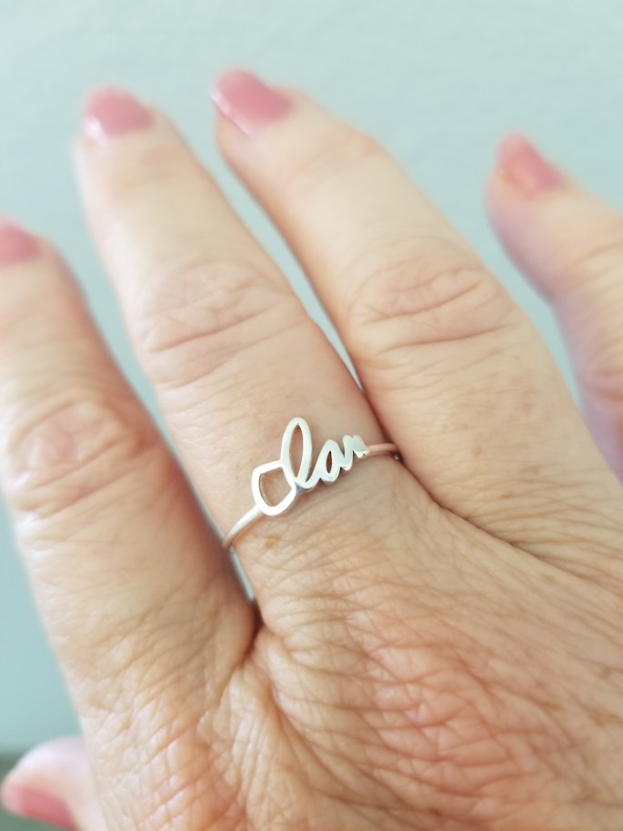 I gazed down onto the three letters I – A – N … strung together in a manner so that I could pick it out in a line-up of a hundred other “Ian” signatures.  It was his actual signature cast perfectly into a delicate silver ring. The signature looked exactly how I had seen it so very many times before when he signed his name to an important letter, note, and later in life, on a sales contract.